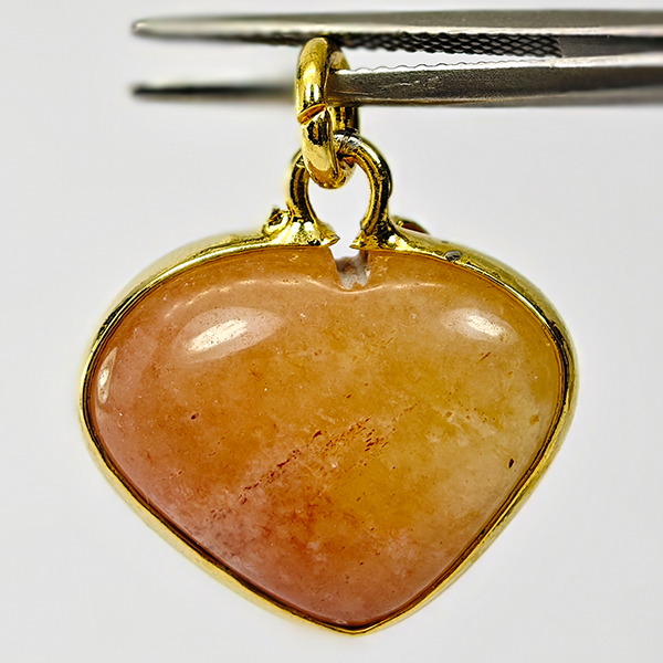 30.95 Ct. Natural Gemstone Brown Honey Jade Heart Nickel Pendant 25 x 25Mm.