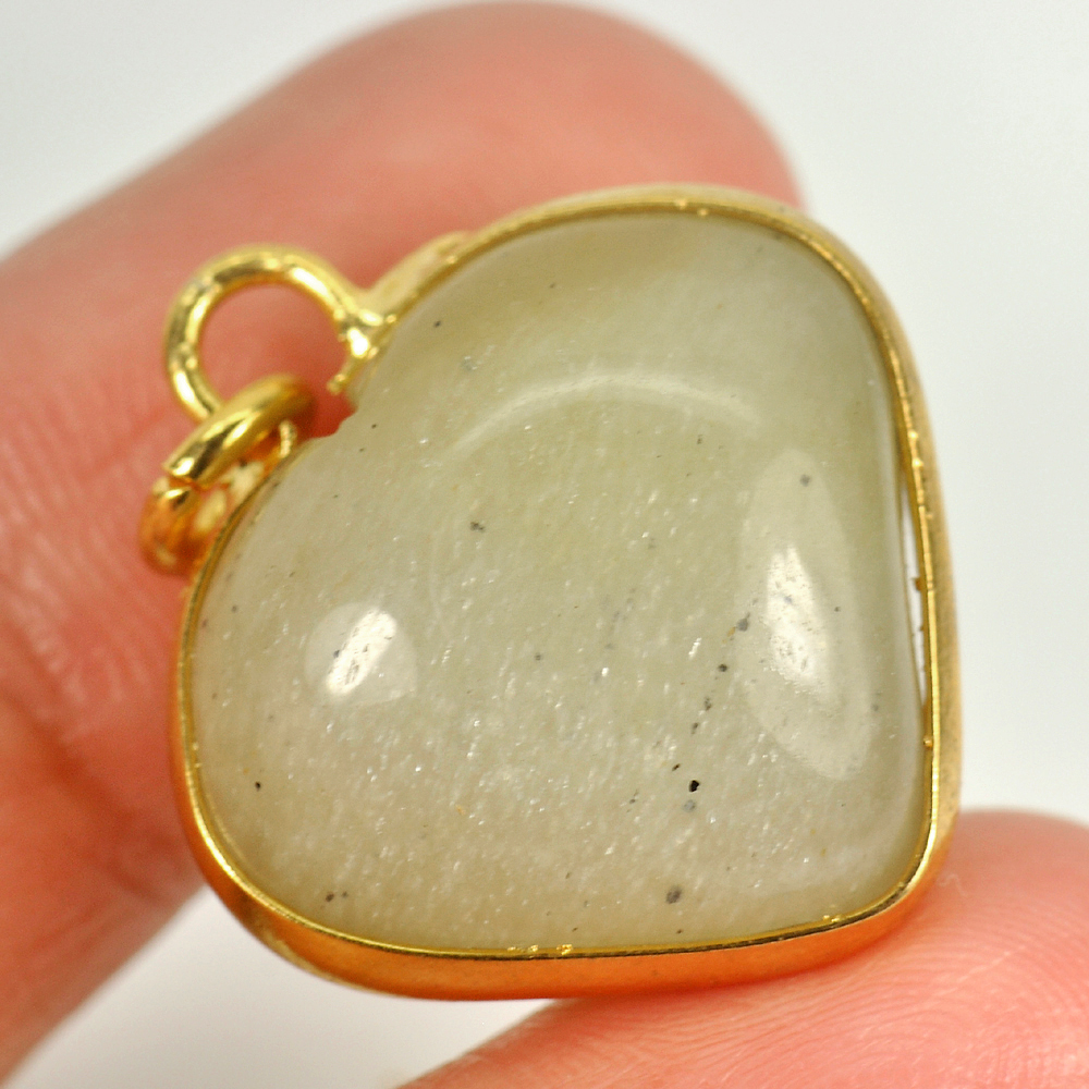 37.69 Ct. Natural Gemstone Multi-Color Jade Heart Nickel Pendant 28x22Mm.