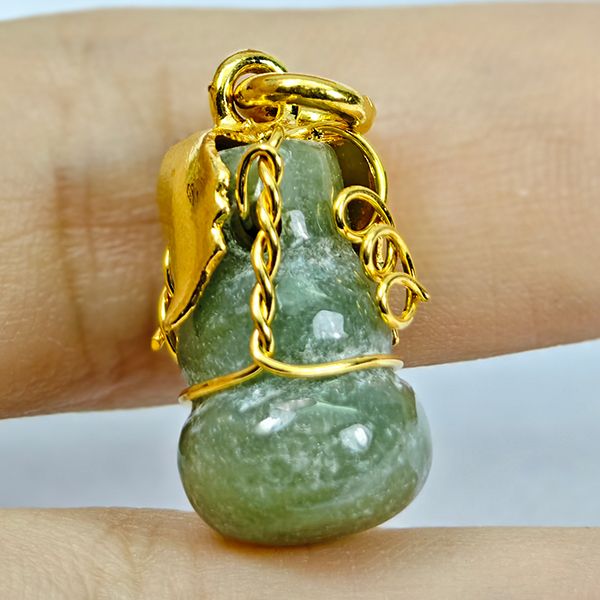 Natural Multi Color Green Jade 19.28 Ct. Calabash Pendant Size 22 x 11 Mm.