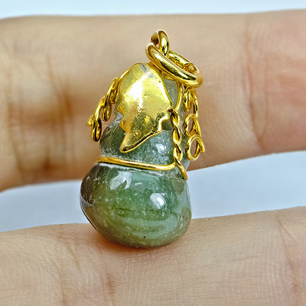 Natural Multi Color Green Jade 19.34 Ct. Calabash Pendant Size 22 x 11 Mm.