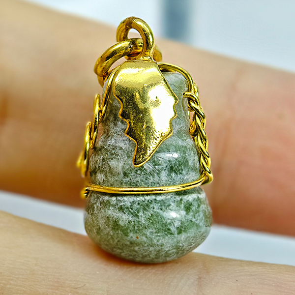 Natural Multi Color Green Jade 18.77 Ct. Calabash Pendant Size 22 x 11 Mm.