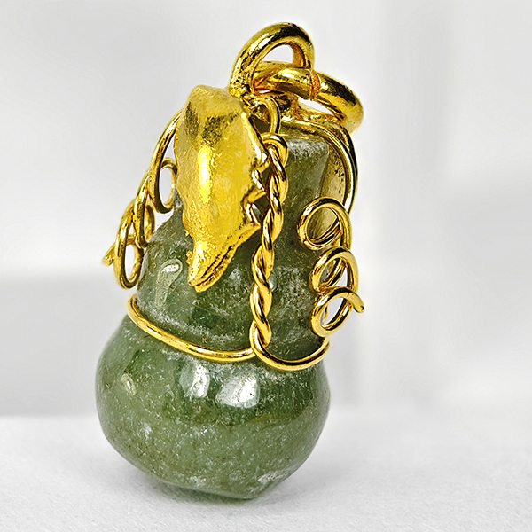 Natural Gemstone Green Jade 19.03 Ct. Calabash Pendant Size 22 x 11 Mm.