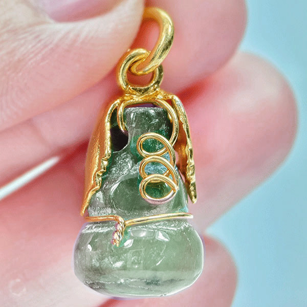 Green White Jade Calabash Nickel Pendant 22 x 12 Mm. 19.35 Ct. Natural Gemstone