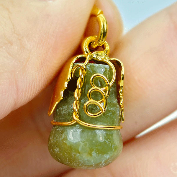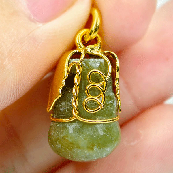 Green Jade Calabash Nickel Pendant 22 x 11 Mm. 19.50 Ct. Natural Gemstone