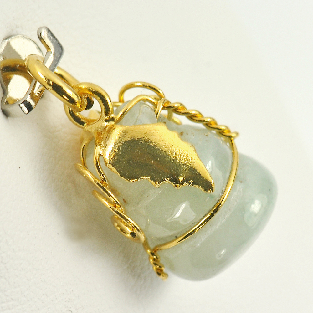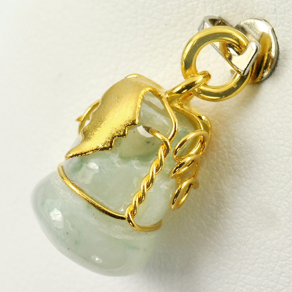 18.78 Ct. Natural Gemstone Green Jade Calabash with Nickel Pendant 23 x 10 Mm.