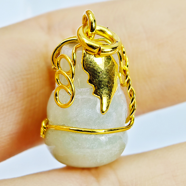 Natural Multi Color Green Jade 21.91 Ct. Calabash Pendant Size 22 x 11 Mm.