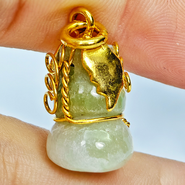 Natural Multi Color Green Jade 19.91 Ct. Calabash Pendant Size 21 x 11 Mm. Gems