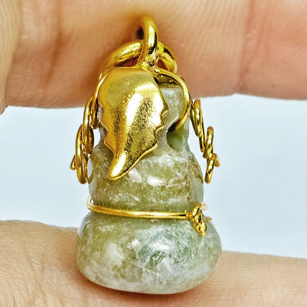 Natural Multi Color Green Jade 17.87 Ct. Calabash Pendant Size 21 x 11 Mm. Gems