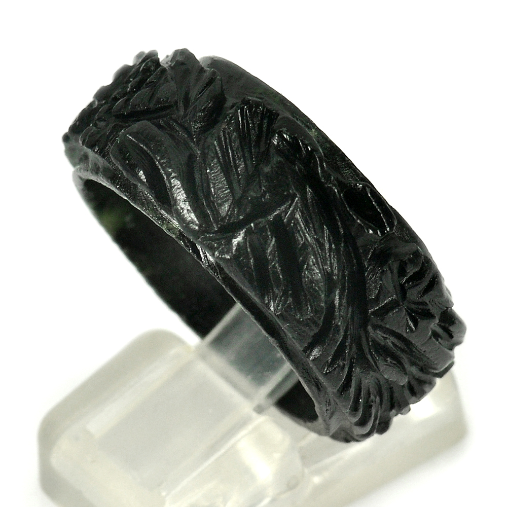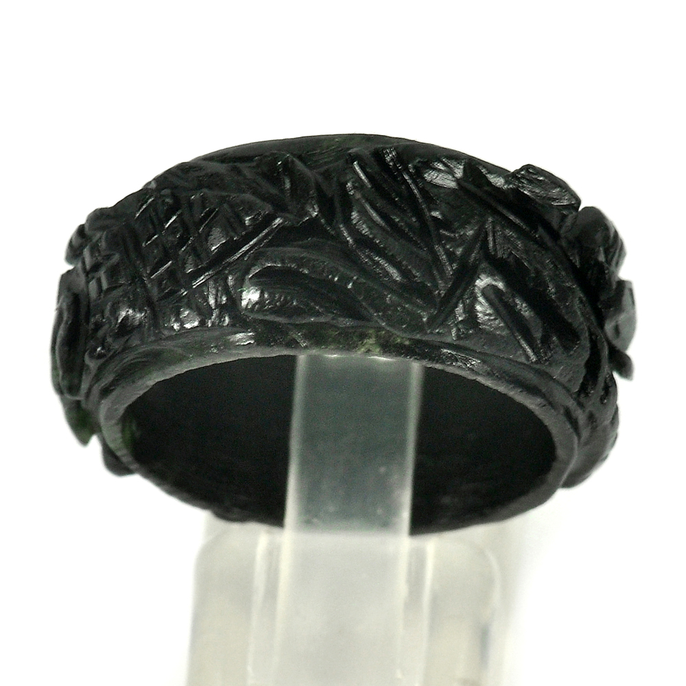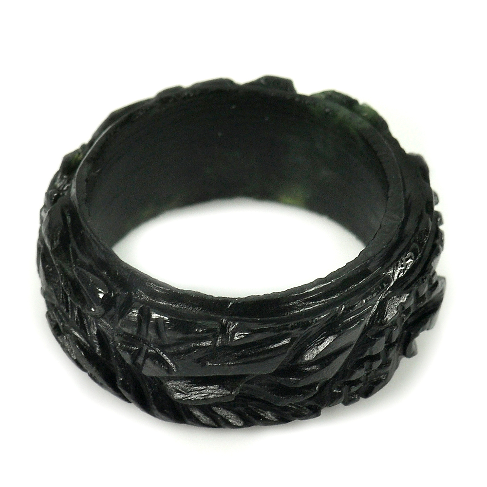 Green Black Jade Dargon Carving Ring Size 10 Natural Gemstone 27.76 Ct. Unheated