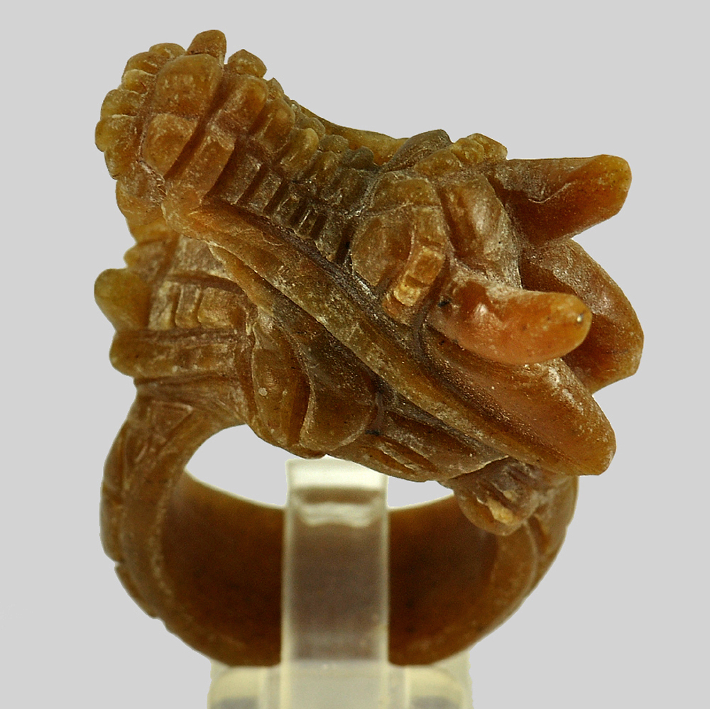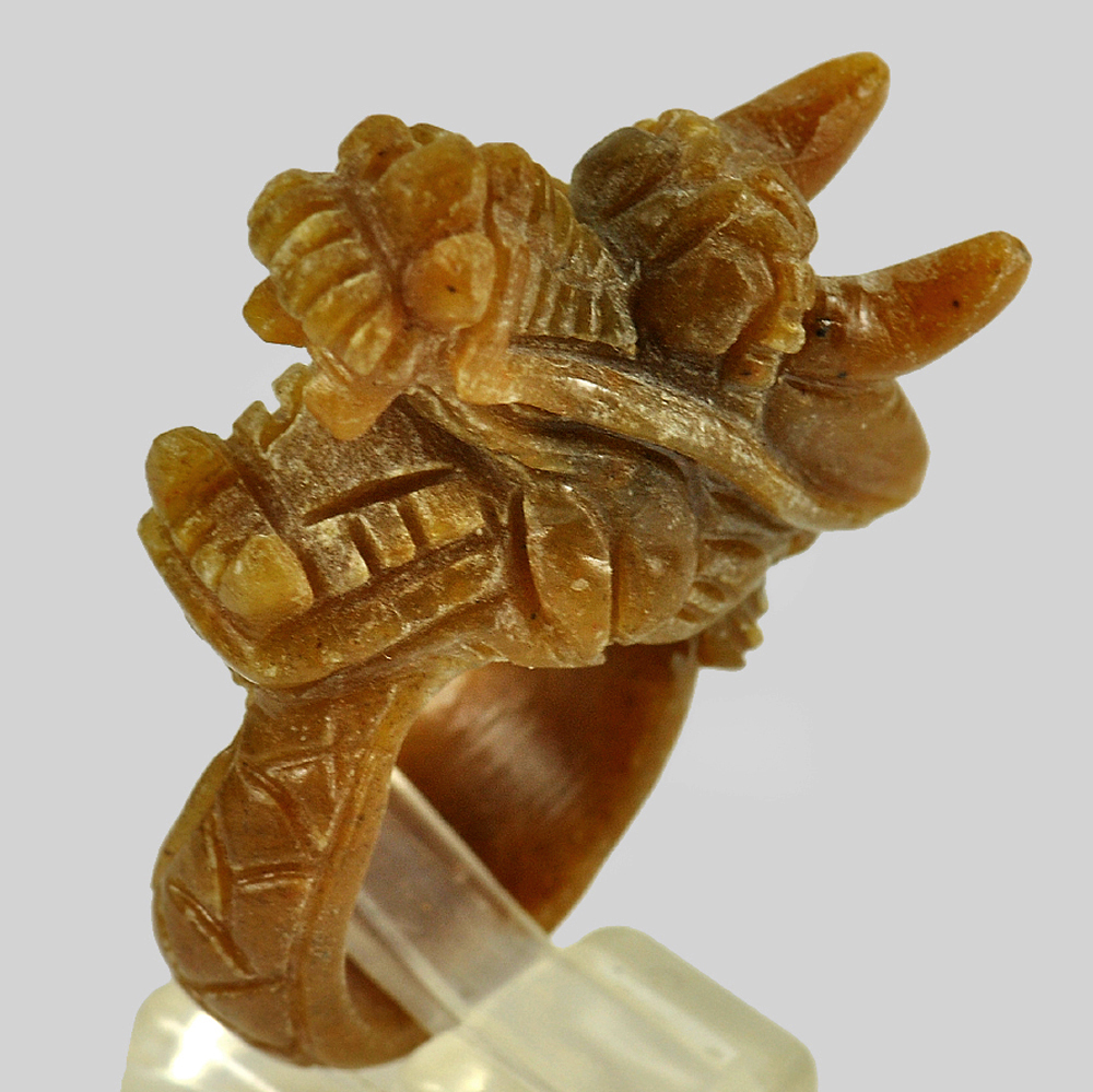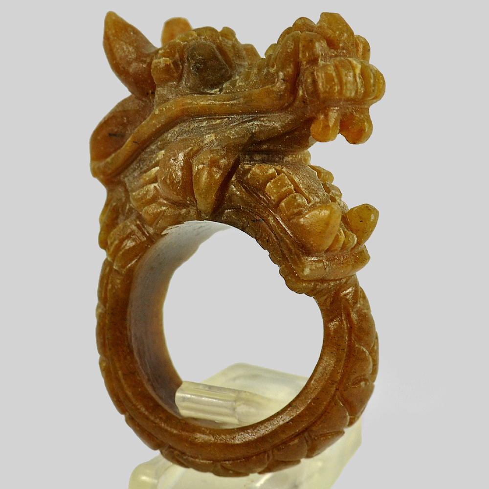 Brown Jade Dragon Carving Ring Size 8 Natural Gemstone 80.00 Ct. 41 x 19 Mm.
