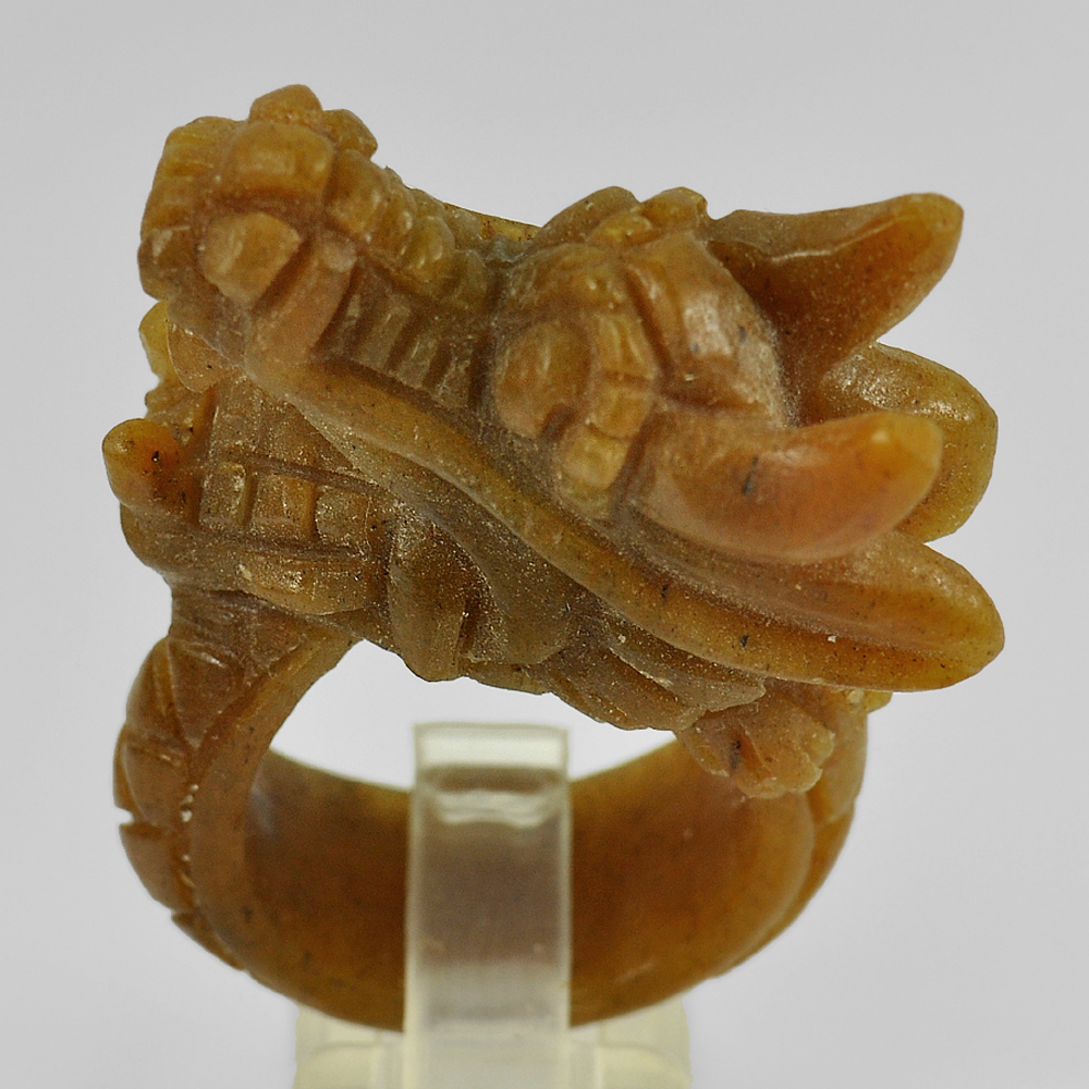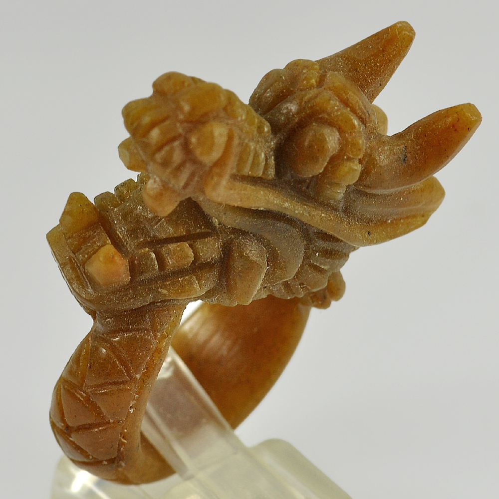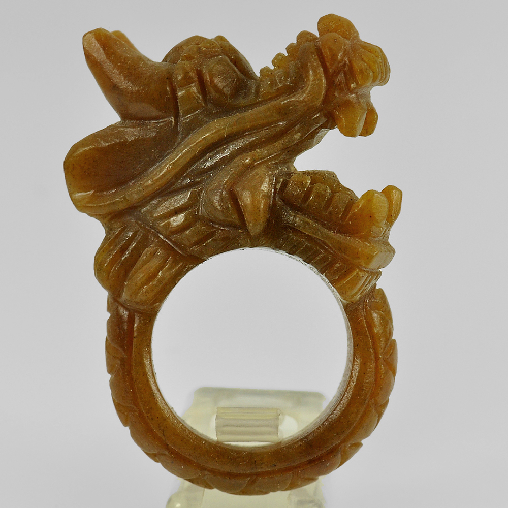 Brown Jade Dragon Carving Ring Size 8 Natural Gemstone 84.25 Ct. 43 x 18 Mm.