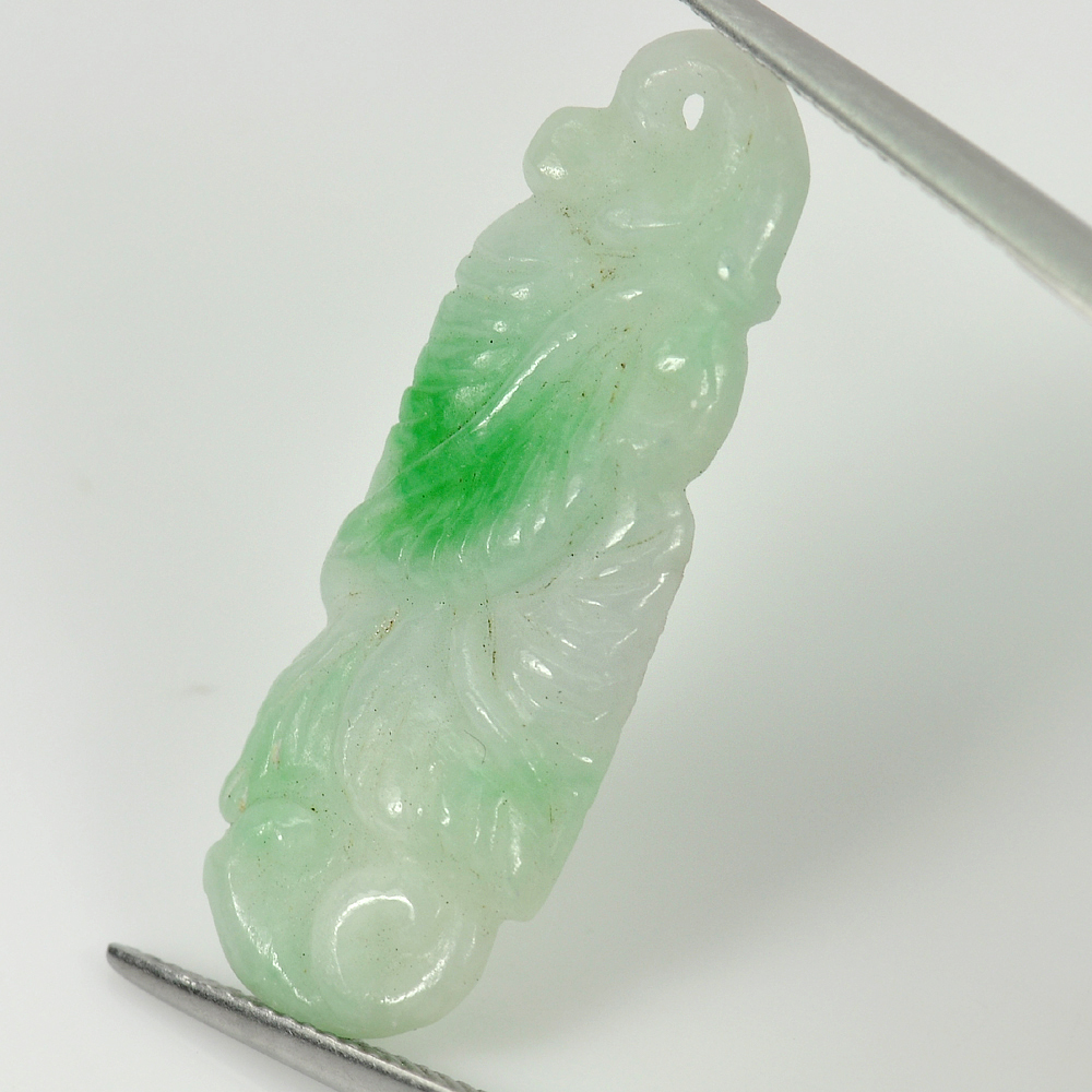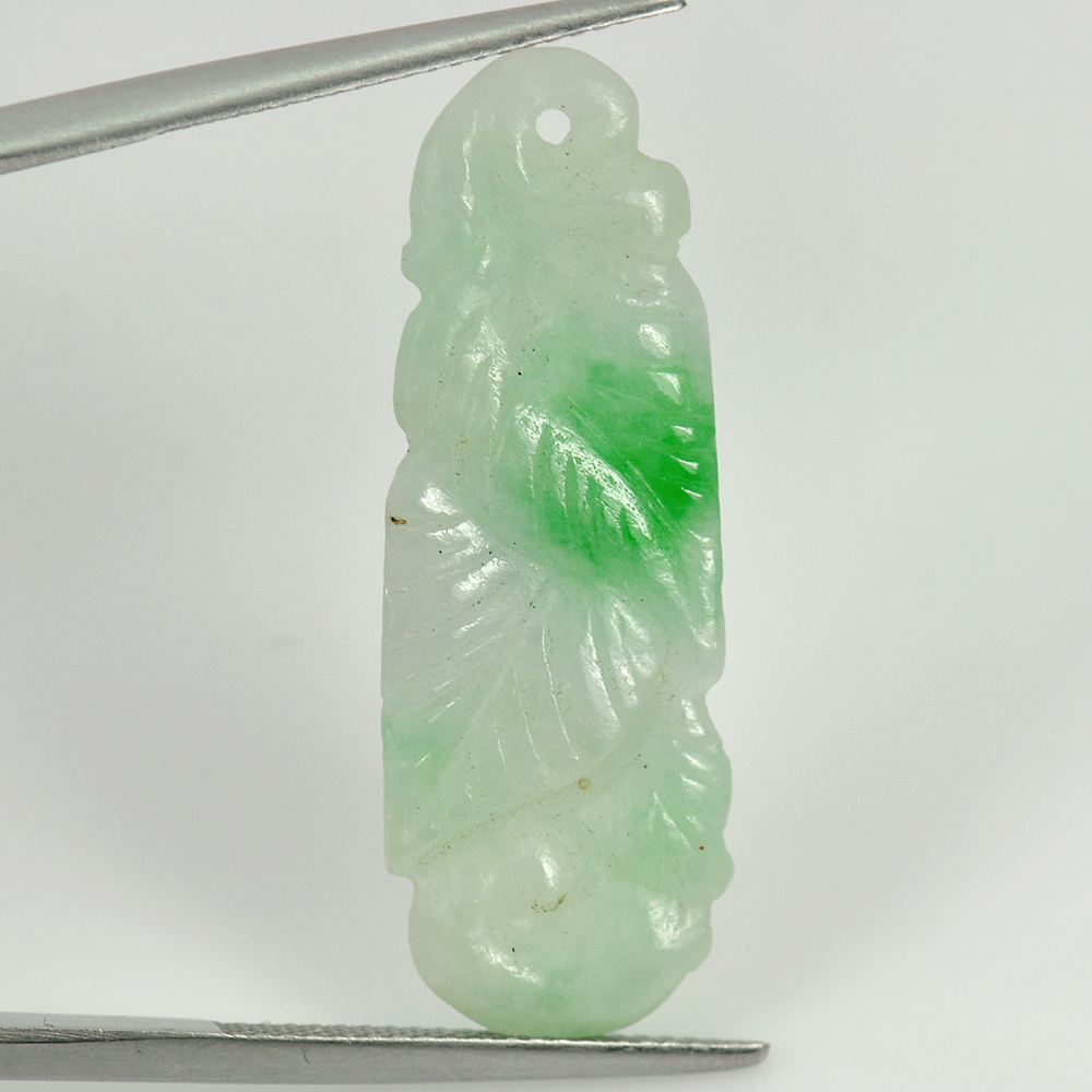 Green White Jade 10.97 Ct. Leaf Fruit Carving Drilled Pendant Natural Gemstone