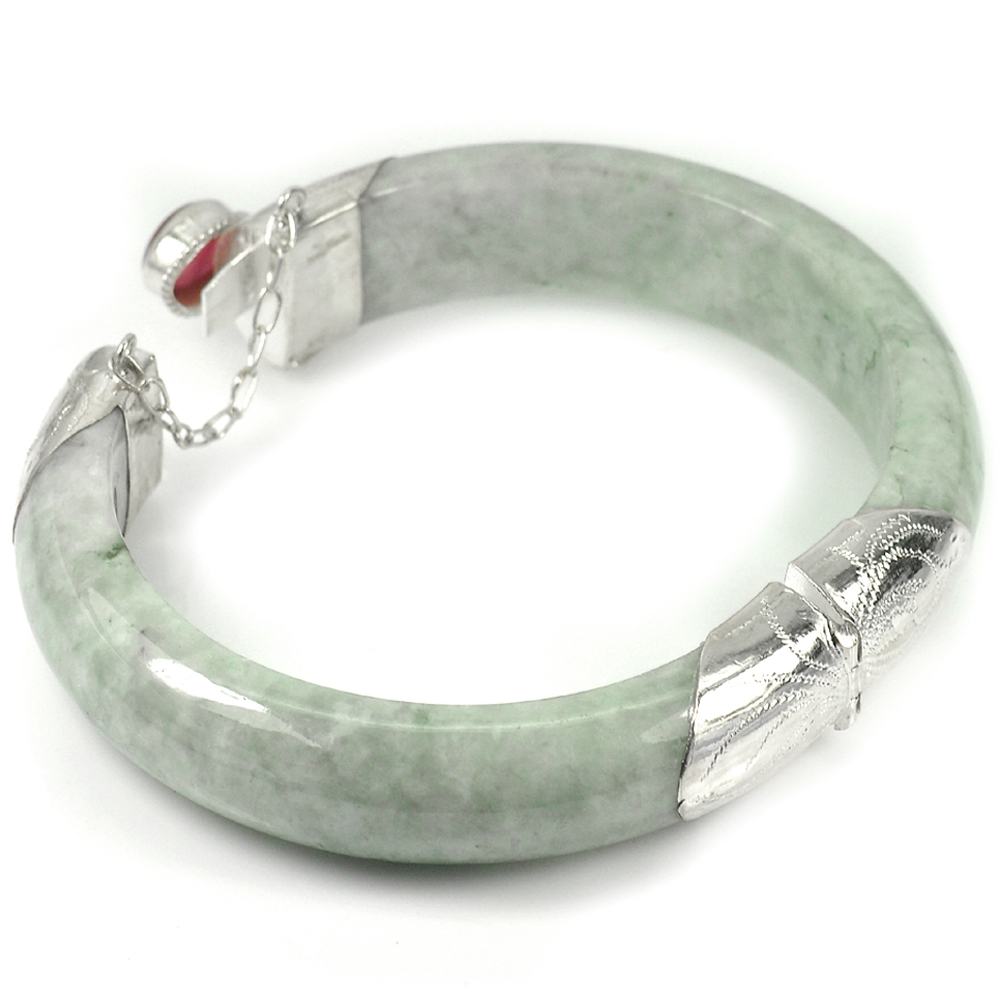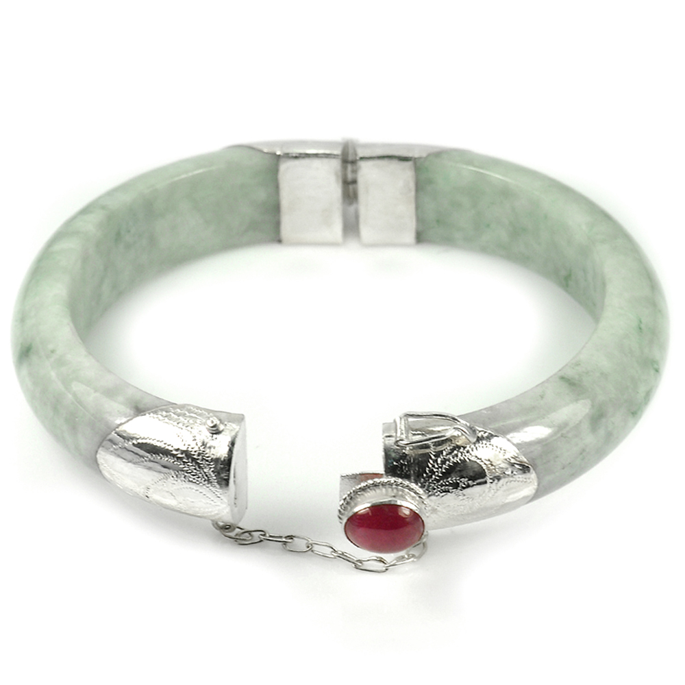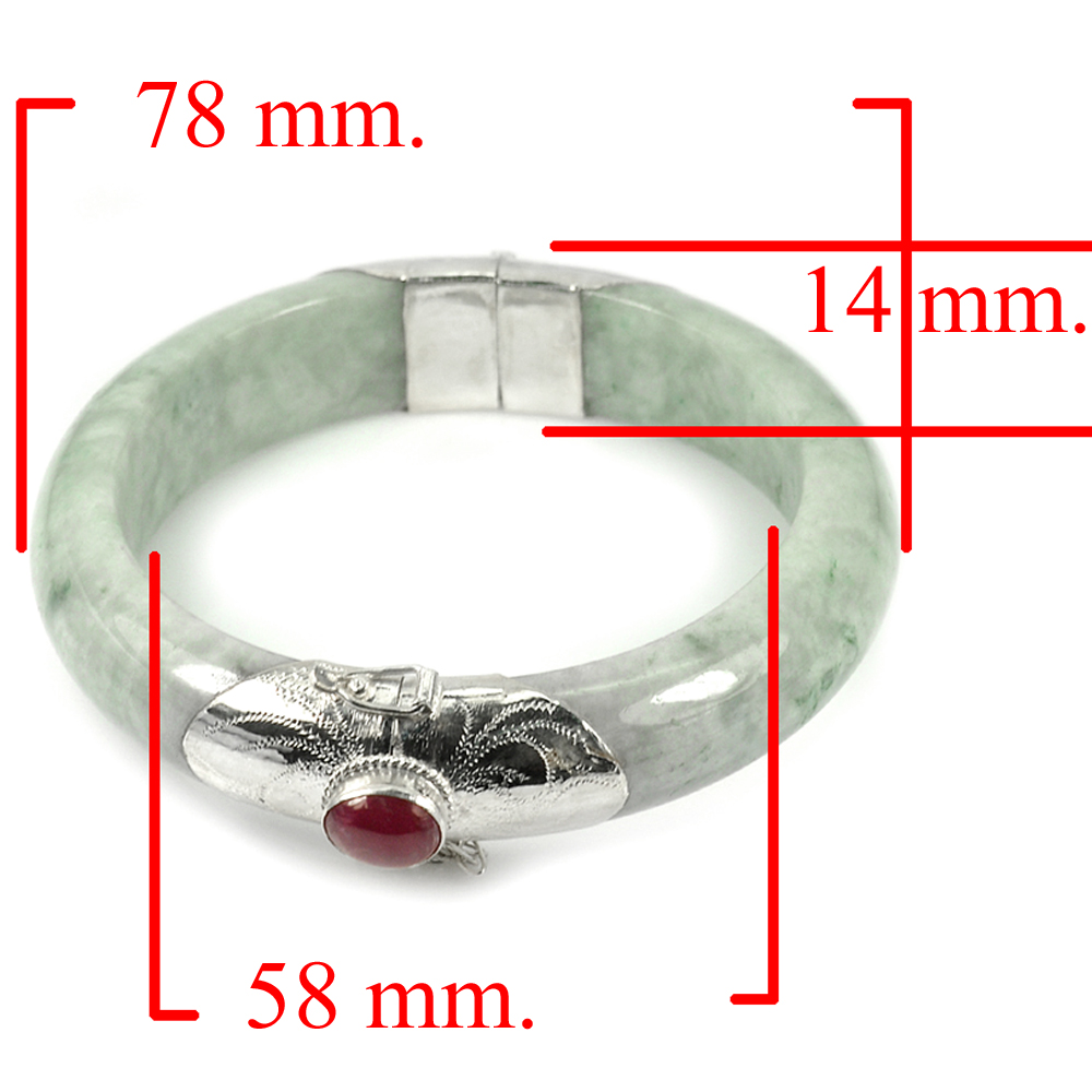 Green Jade Bangle with Silver Diameter 58 Mm. 361.02 Ct. Natural Gem Red Ruby