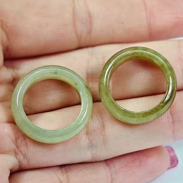 Natural Multi Color Jade 21.84 Ct. 2 Pcs Round Cabochon Rings Size 4.5 Gemstones