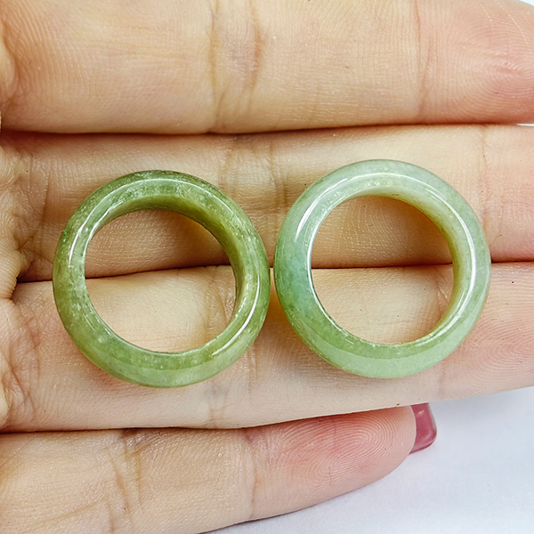 Natural Multi Color Jade 25.24 Ct. 2 Pcs Round Cabochon Rings Size 4.5 Gemstones