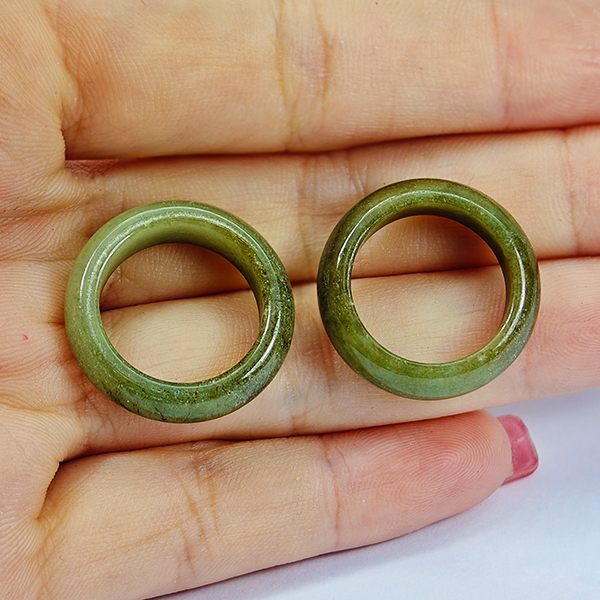 Natural Multi Color Jade 27.68 Ct. 2 Pcs Round Cabochon Rings Size 4.5 Gemstones
