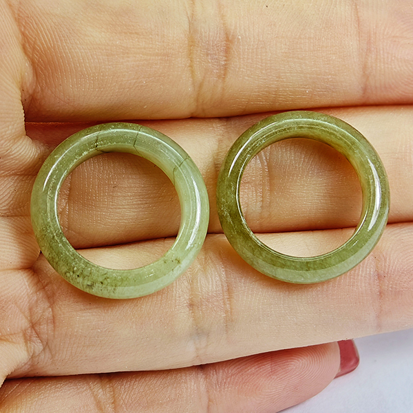 Natural Multi Color Jade 22.63 Ct. 2 Pcs Round Cabochon Rings Size 4.5 Gemstones