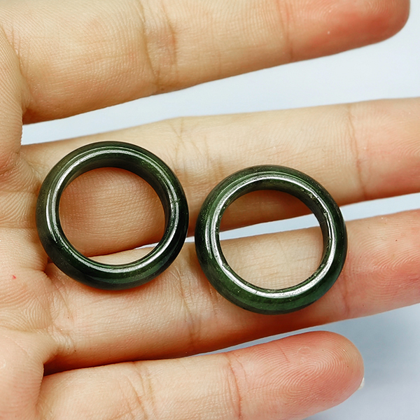 Natural Multi Color Jade 24.29 Ct. 2 Pcs Round Cabochon Rings Size 4.5 Gemstones