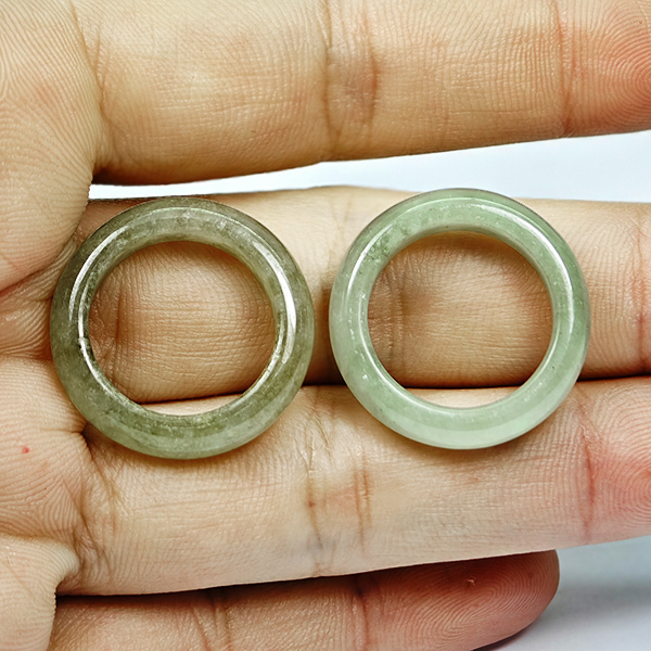 Natural Multi Color Jade 25.02 Ct. 2 Pcs Round Cabochon Rings Size 4.5 Gemstones
