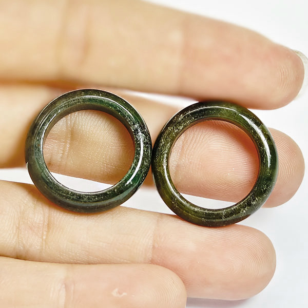 Natural Gemstones White Green Jade 22.63 Ct. 2 Pcs. Rings Size 4.5 Unheated