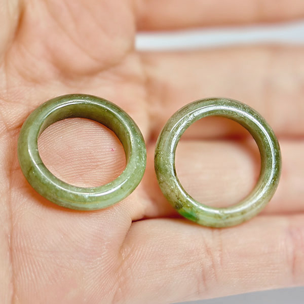 Natural Gemstones White Green Jade 23.85Ct. 2 Pcs. Rings Size 4.5 Unheated