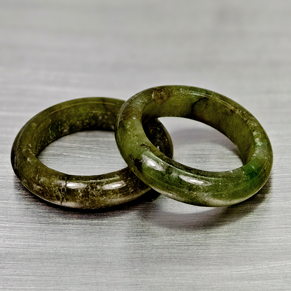 Natural Multi Color Jade 20.89 Ct. 2 Pcs Round Cabochon Rings Size 4.5 Gemstones