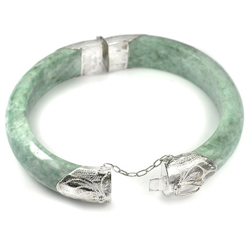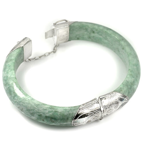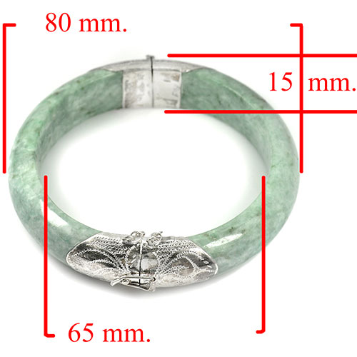 Green Jade Bangle with Silver 389.44 Ct. Size 80 x 65 x 15 Mm. Natural Gemstone