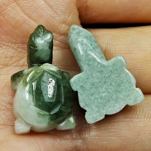 Natural Genuine Multi Color Jade 44.50 Ct. 2 Pcs. Turtle Carving