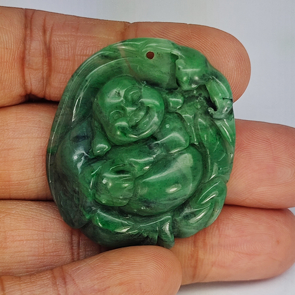 Natural Genuine Burmese Multi Color Jade 90.86 Ct. Carving Shape 40 x 35 Mm Gemstone from Thailand