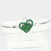 4.97 G. Real 925 Sterling Silver Heart Design with CZ Green Bracelet 6.5 Inch.